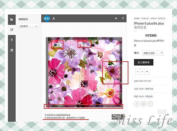 MISS LIN提醒若要訂購的朋友們,若你有要上傳照片或文字編輯,記得要避開下圖中4個地方,因為手機孔位/吊孔處/磁扣摺疊處以及邊緣處都會裁切。