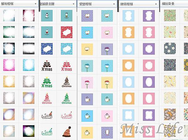 還有許多很漂亮的圖片與相框式設計,若你只是單張照片不妨試一下套上免費圖片試試。